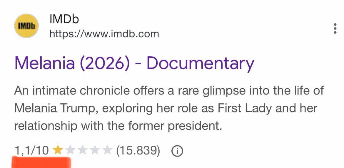 Documentarul „Melania” (despre viaţa soţiei lui Donald Trump) are media notelor primite pe IMDb 1,1 din 10. O dovadă în plus că Trump a ajuns „cel mai iubit fiu al planetei Terra”.